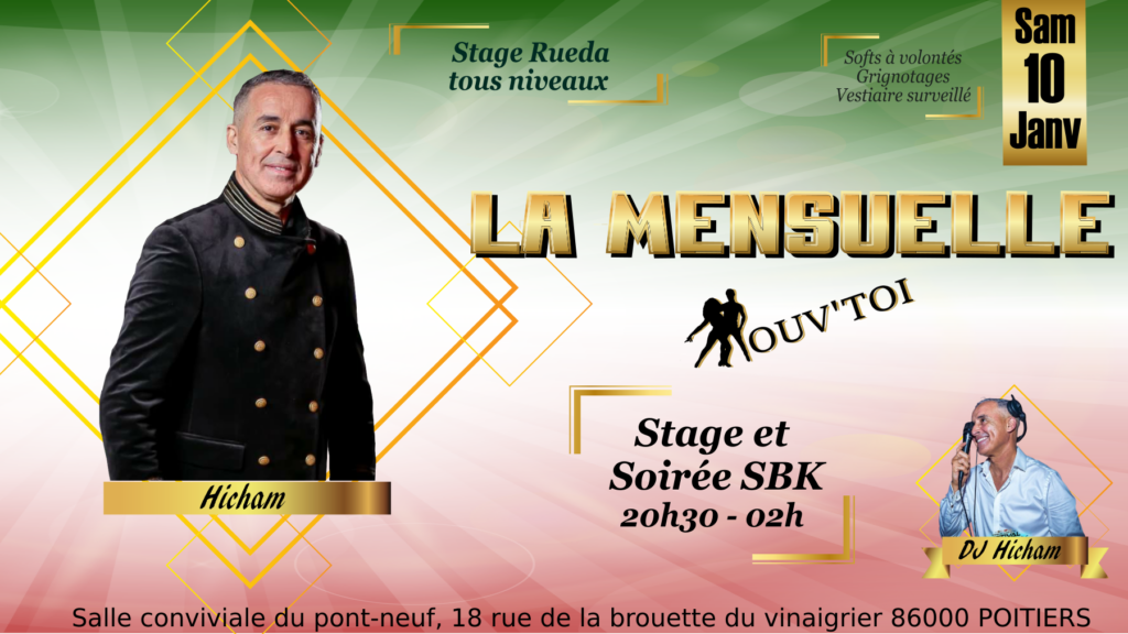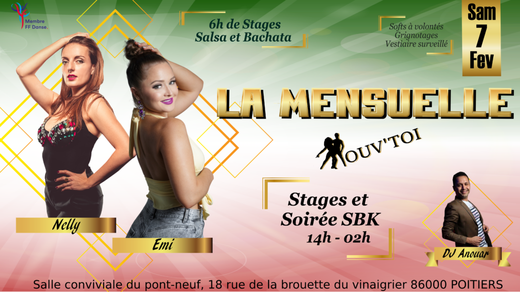 Pour cette septième année, nous poursuivons les stages et la soirée mensuelle à thème :
