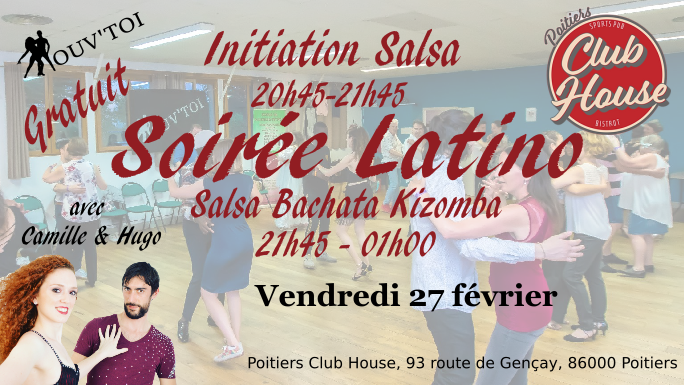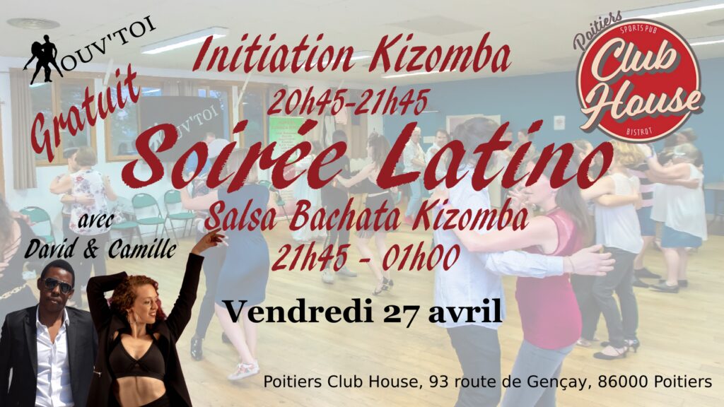 Camille & Hugo vous proposent régulièrement des stages de bachata un peu partout en France lors de différents festivals (Kizatours, Festival International Latino de St Raphaël, LatinoFitFestival..), soirées les week-ends (Blois, Tours, Niort, Melle…) ou stages les après-midi (Poitiers, Amboise…)